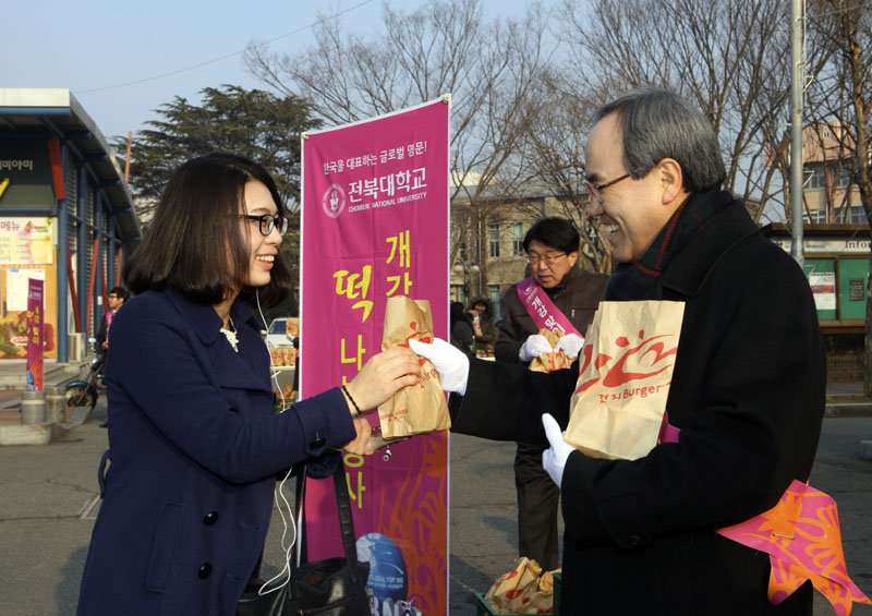 서 총장은 개강 이튿날인 3월 5일 이른 아침부터 보직자들과 함께 교문 앞에 나섰다. 떡과 우유를 등굣길 학생 한명 한명에게 쥐어주며 새 학기 반가운 인사와 함께 덕담도 잊지 않는다.