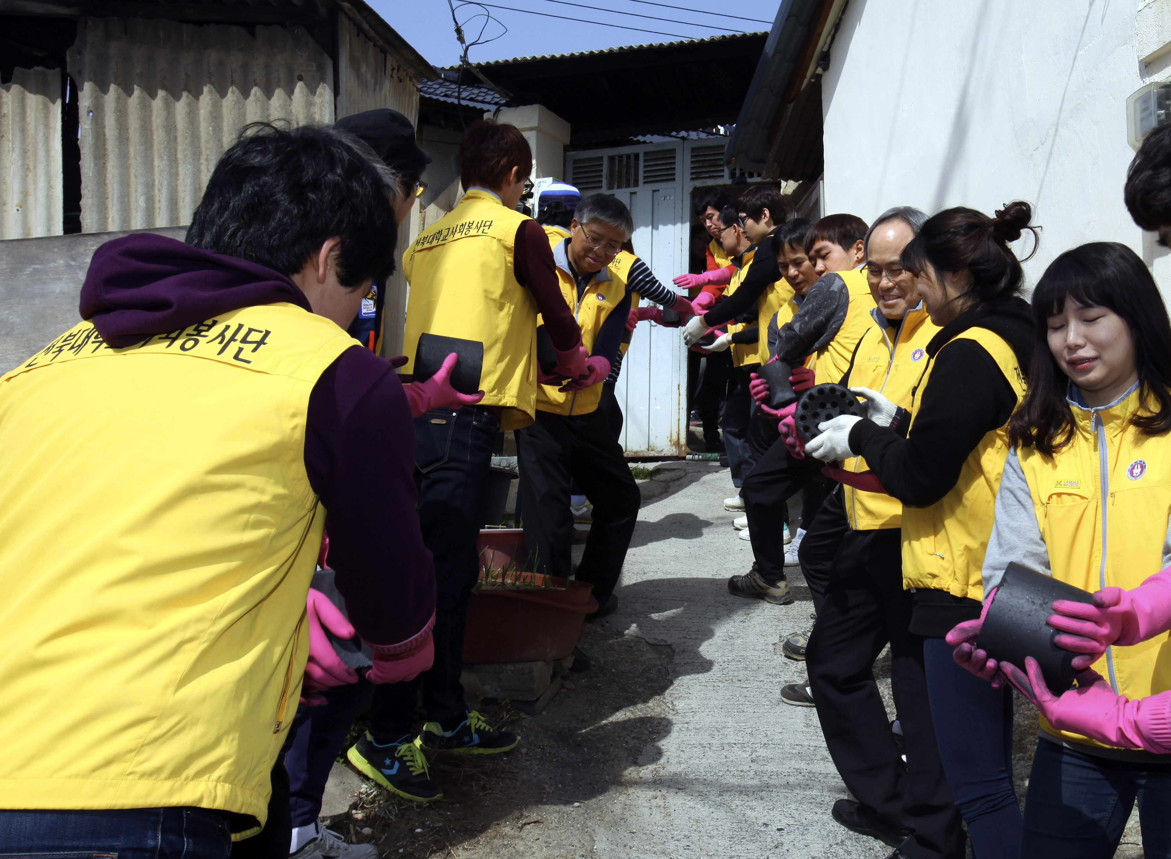따사로운 봄기운이 완연했던 지난 3월 16일(토). 노란 조끼를 입은 우리대학 사회봉사단 학생들이 금암2동 주민센터 인근에 속속 모여들었다.