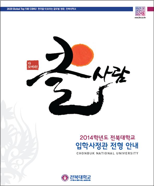 52쪽으로 구성된 안내책자는 ‘입학사정관 전형 바로알기’, ‘입학사정관제가 바라는 인재는?’, ‘전북대학교 2014학년도 입학사정관 전형 상세 소개’, ‘입학사정관 전형 합격수기’, ‘선배가 후배에게 들려주는 멘토-멘티이야기’, ‘언론에 소개된 입학사정관제’ 등 풍부한 소재들이 가득 담겼다.