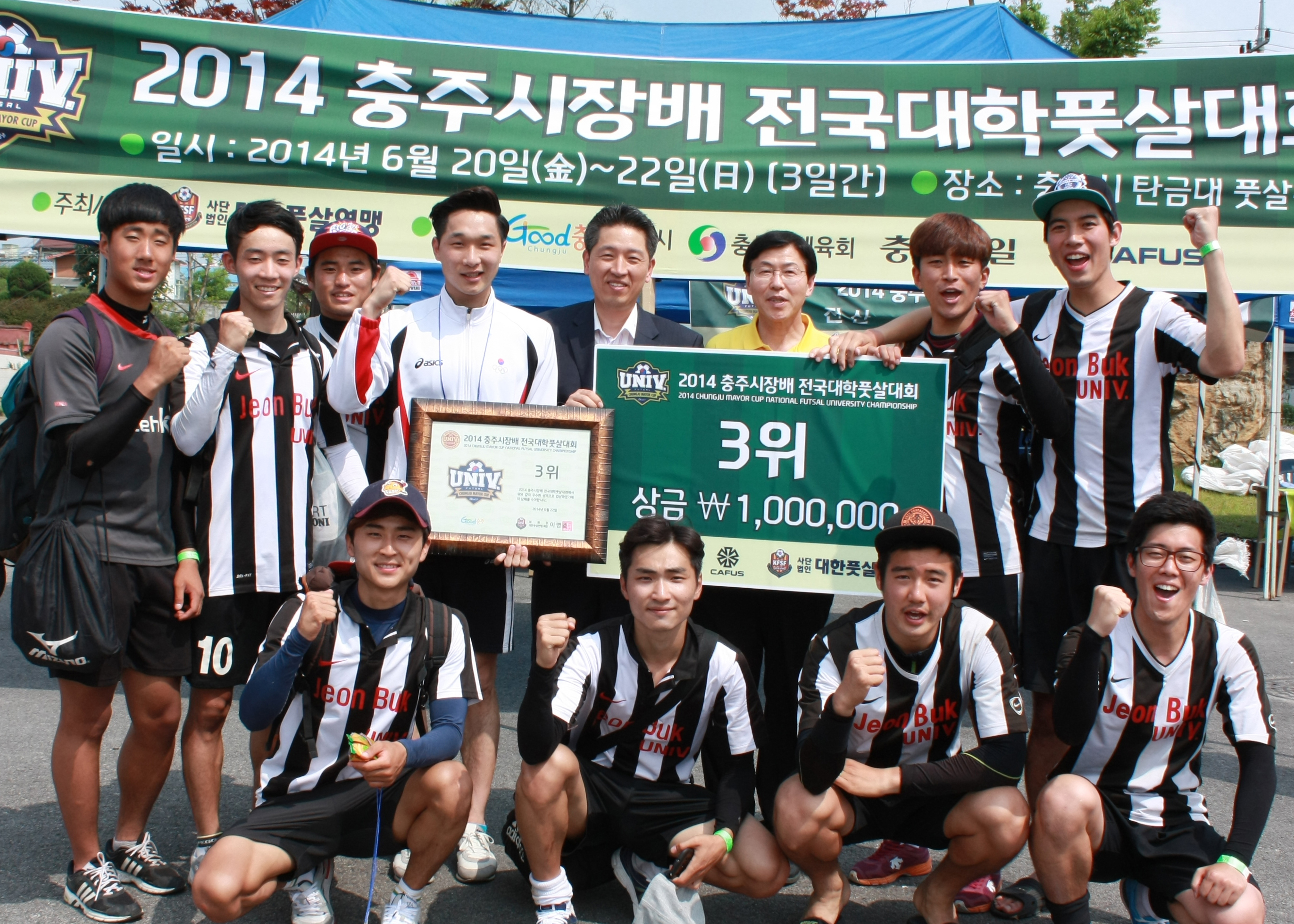 대한풋살연맹이 주최하고 충주시가 주관한 이번 대회는 브라질 월드컵에서 대한민국의 선전을 기원하기 위해 개최된 대회로, 우리대학을 비롯해 전국 28개 대학 32개팀이 출전해 4일간의 열전을 벌였다.