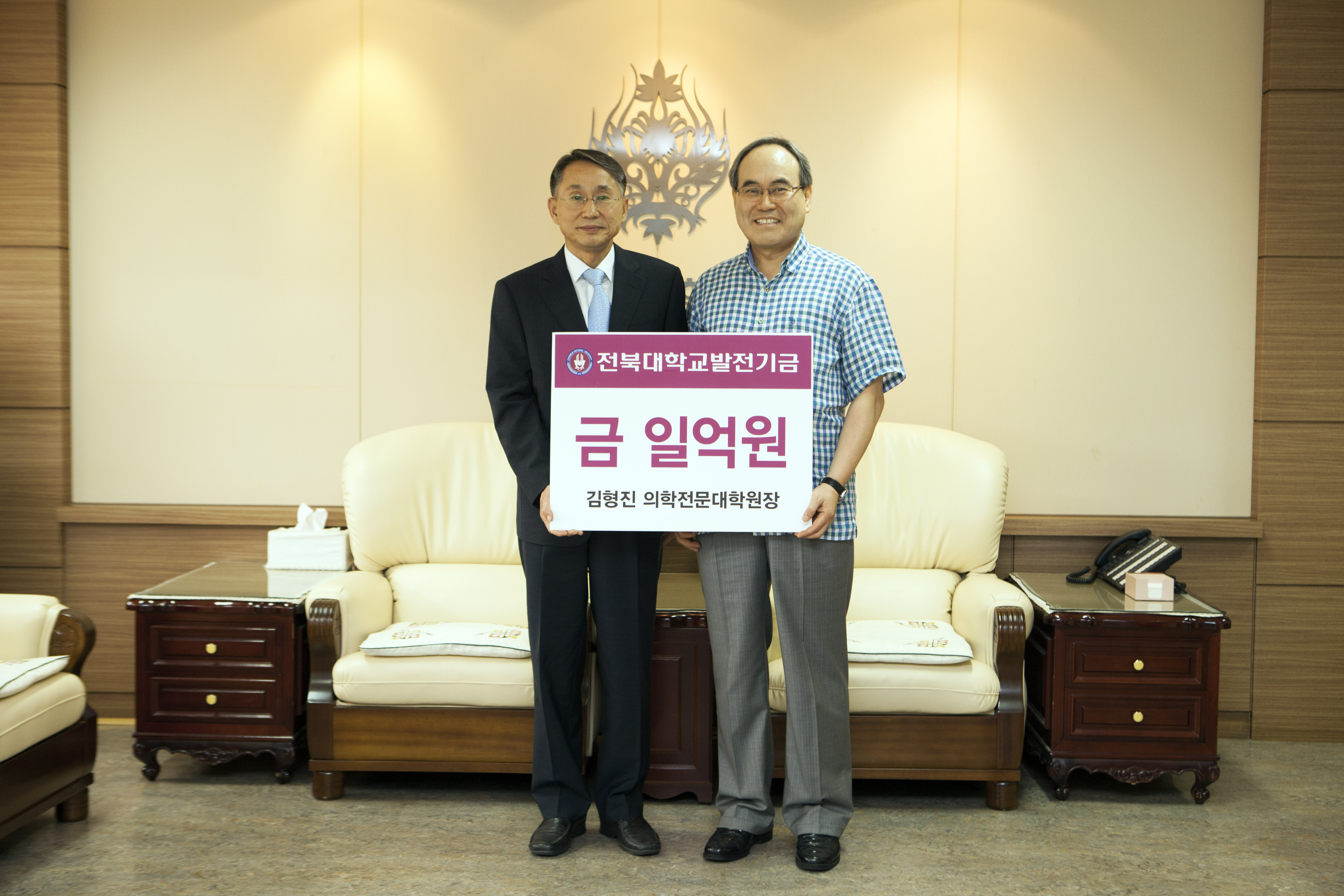 우리대학은 8월 6일 오전 11시 본부 총장실에서 발전기금 기탁식을 갖고 거액의 기금을 출연한 김 원장에게 감사의 뜻을 전했다.