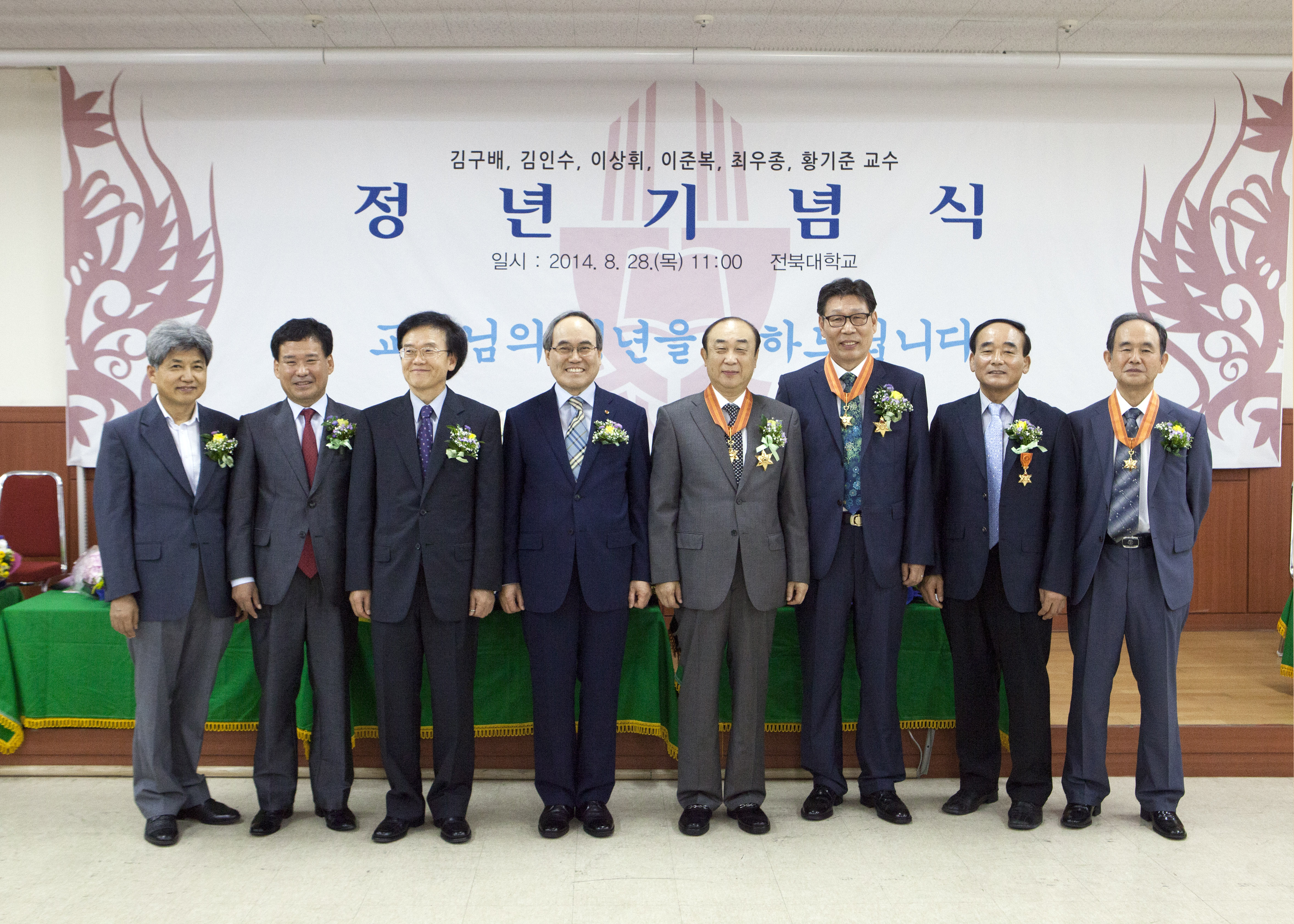 우리대학이 학문 발전과 후진양성을 위해 평생을 강단에서 보내고 8월말 정년을 맞는 교수들에 대한 정년기념식을 8월 28일 오전 11시 진수당 김광수홀에서 거행했다.