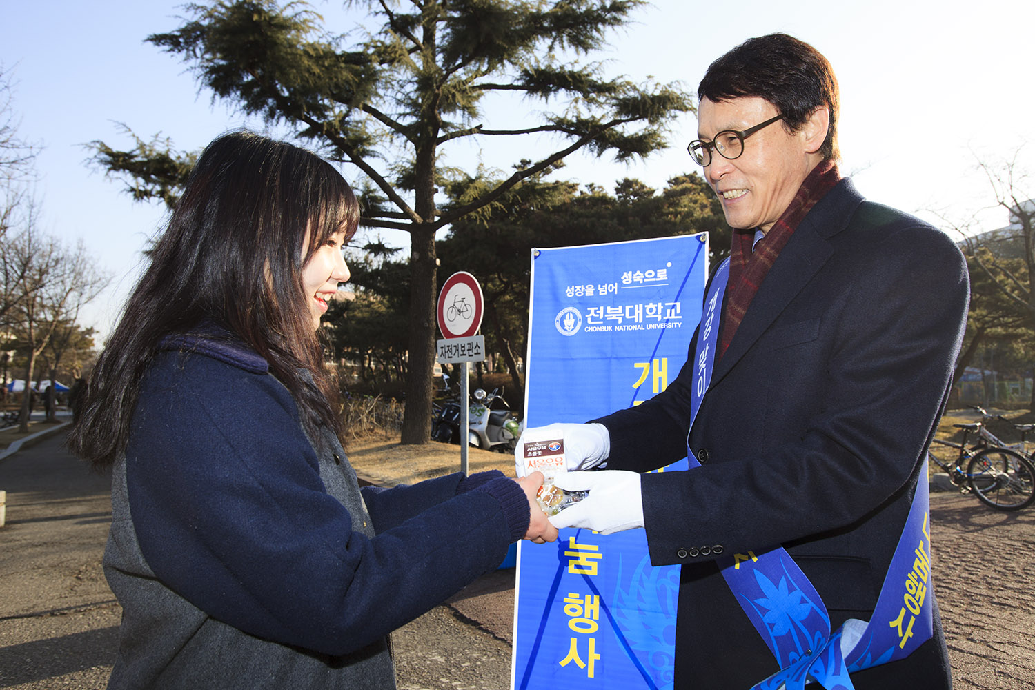 이남호 총장을 비롯한 보직자들은 모든 출입문에 나눠 서서 오랜 방학을 마치고 등교하는 학생들에게 떡과 음료를 나눠주며 눈인사를 나눴다. 간식을 건네고 받는 손길 속에 이날 아침 전북대 곳곳에는 성큼 다가온 봄날만큼이나 따뜻한 웃음꽃이 피어났다.