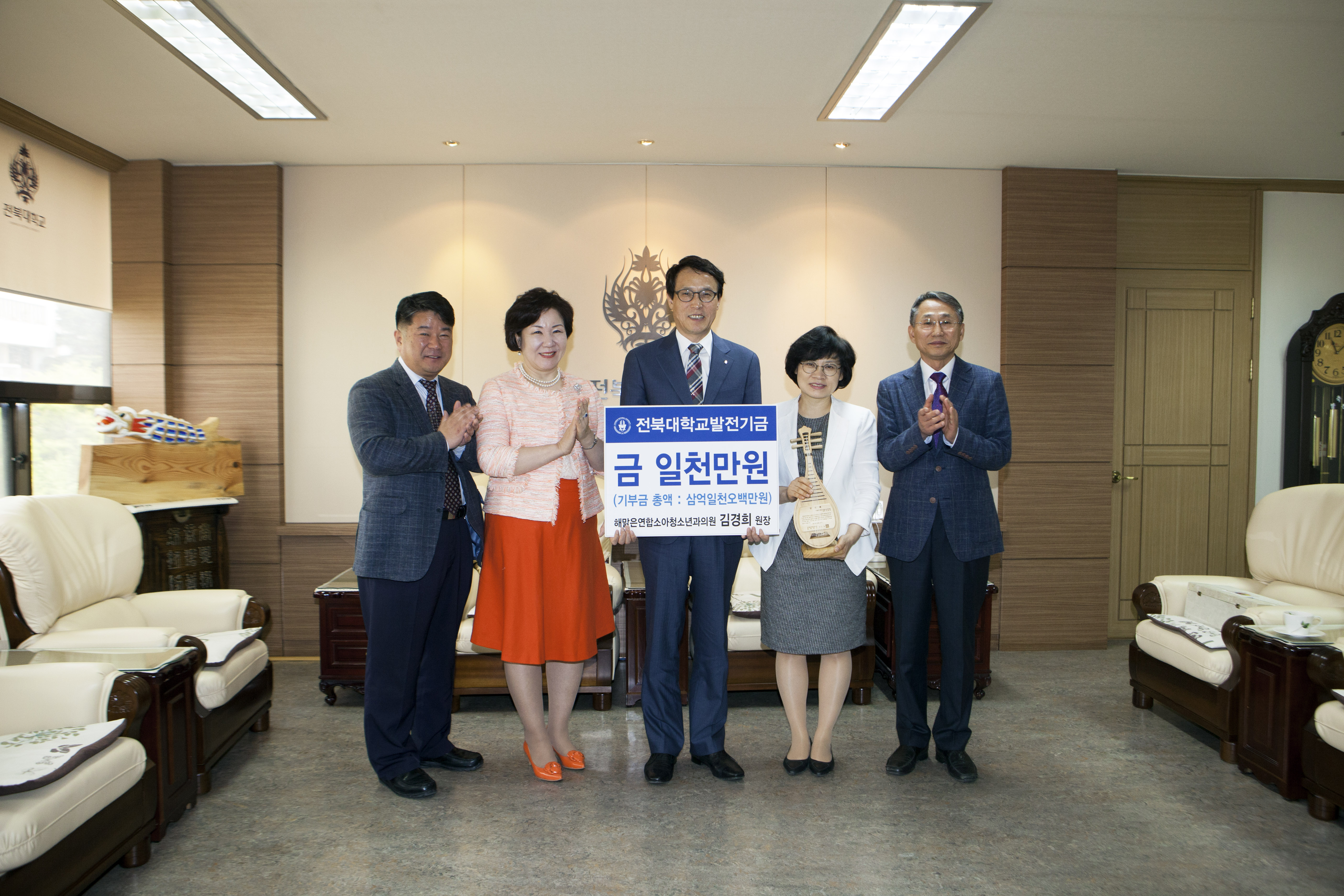 김 원장은 4월 22일 오전 11시 이남호 총장을 찾아 후학들을 위한 장학금으로 써달라며 1천만 원의 발전기금을 기탁했다.