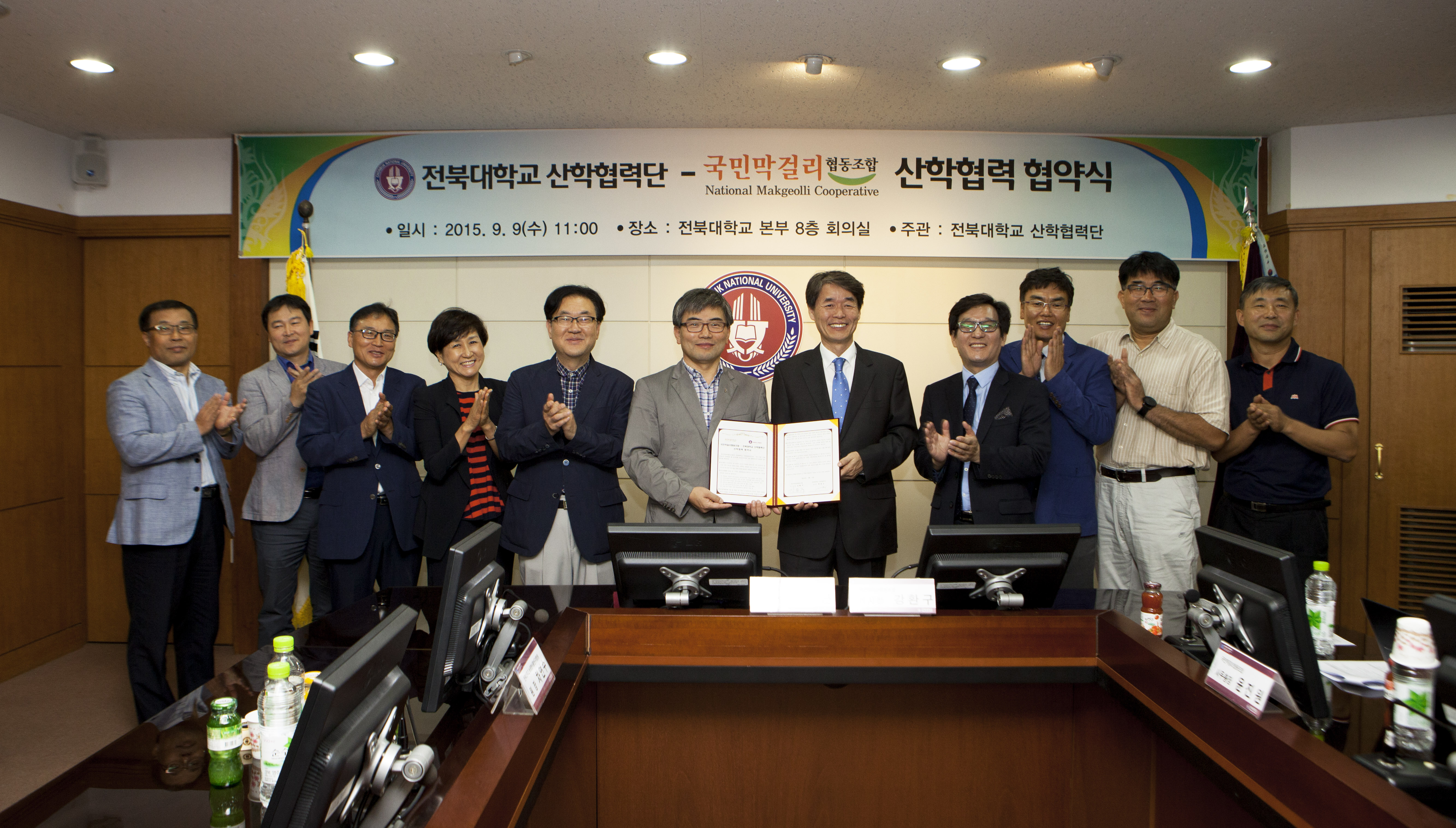 양 기관은 9월 9일 오전 전북대 본부 8층 회의실에서 곽용근 전북대 산학협력단장과 강환구 국민막걸리협동조합 이사장 등 양 기관 주요 관계자들이 참석한 가운데 공동 연구 추진 및 산학협력을 위한 협약식을 가졌다.