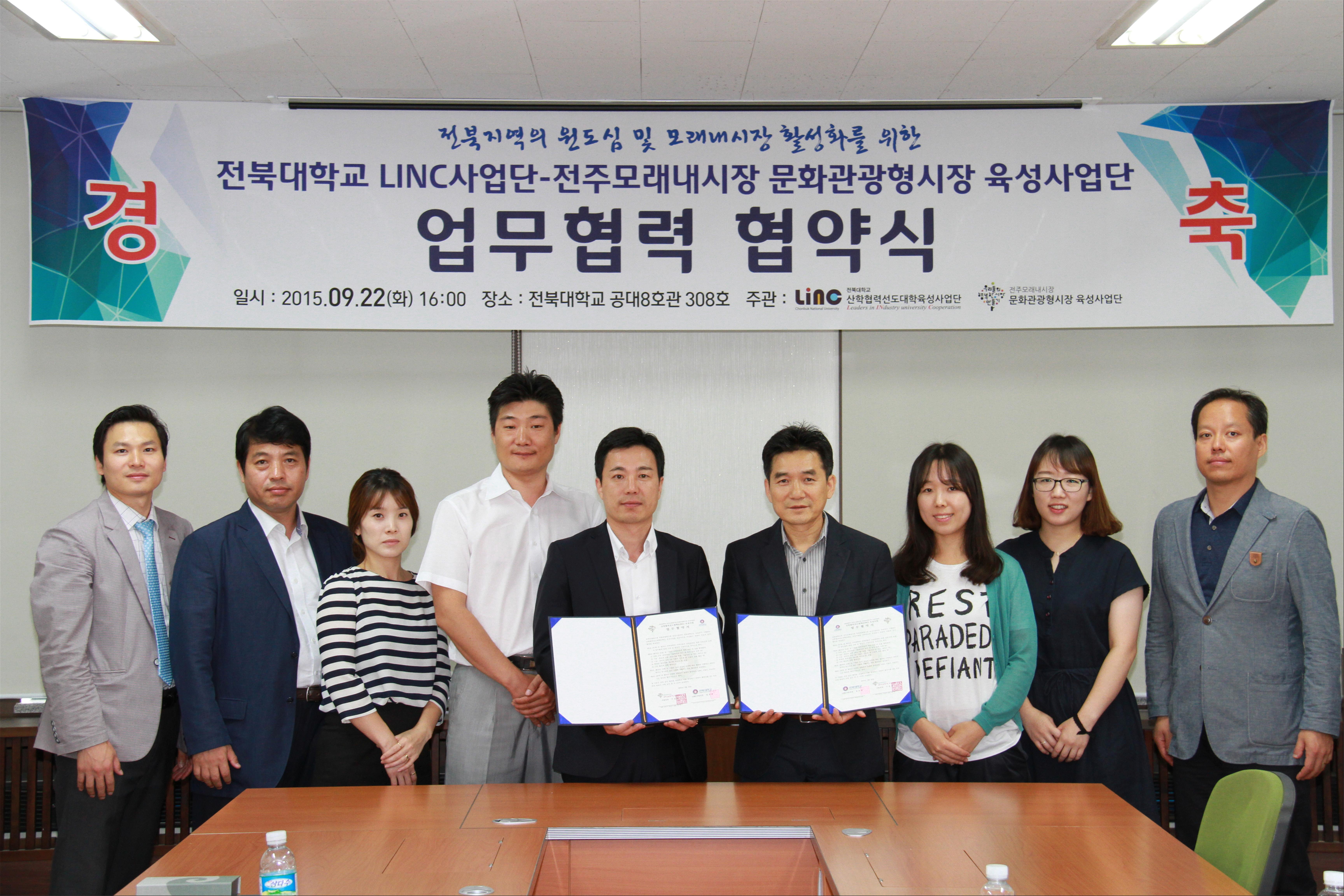 우리대학 LINC사업단이 지역문화 활성화를 위해 전주모래내시장 문화관광형 시장 육성사업단과 9월 22일 업무협약을 체결했다.