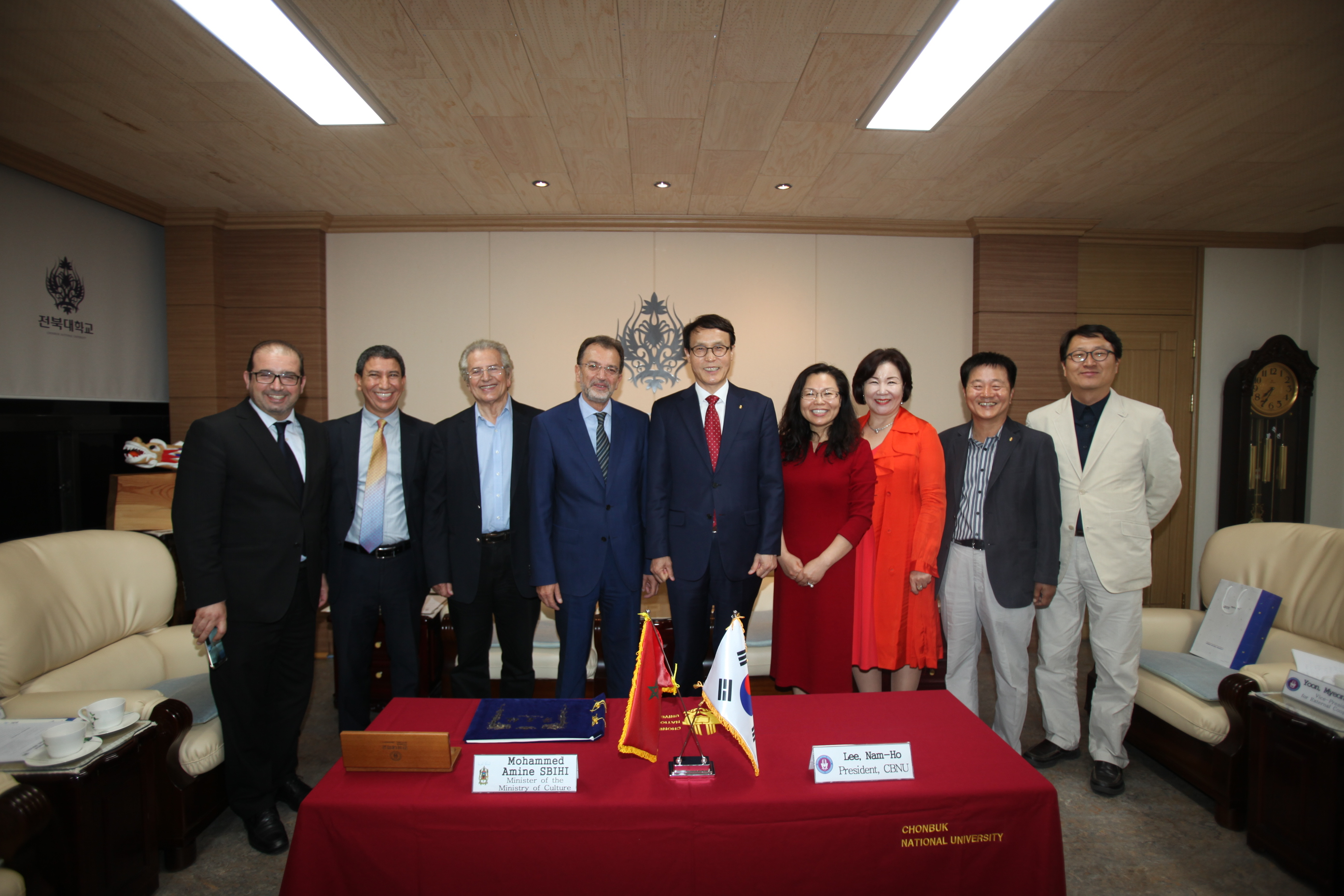 모로코 문화부 모하마드 아민 스비히(Mohammed Amine SBIHI) 장관과 아메드 스쿤디(Ahmed Skounti) 유무형유산관리 총괄 책임자 등은 10월 15일 전북대를 방문해 이남호 총장과 설경원 LINC사업단장을 만나 양국 간 학술교류 확대 방안을 논의했다.