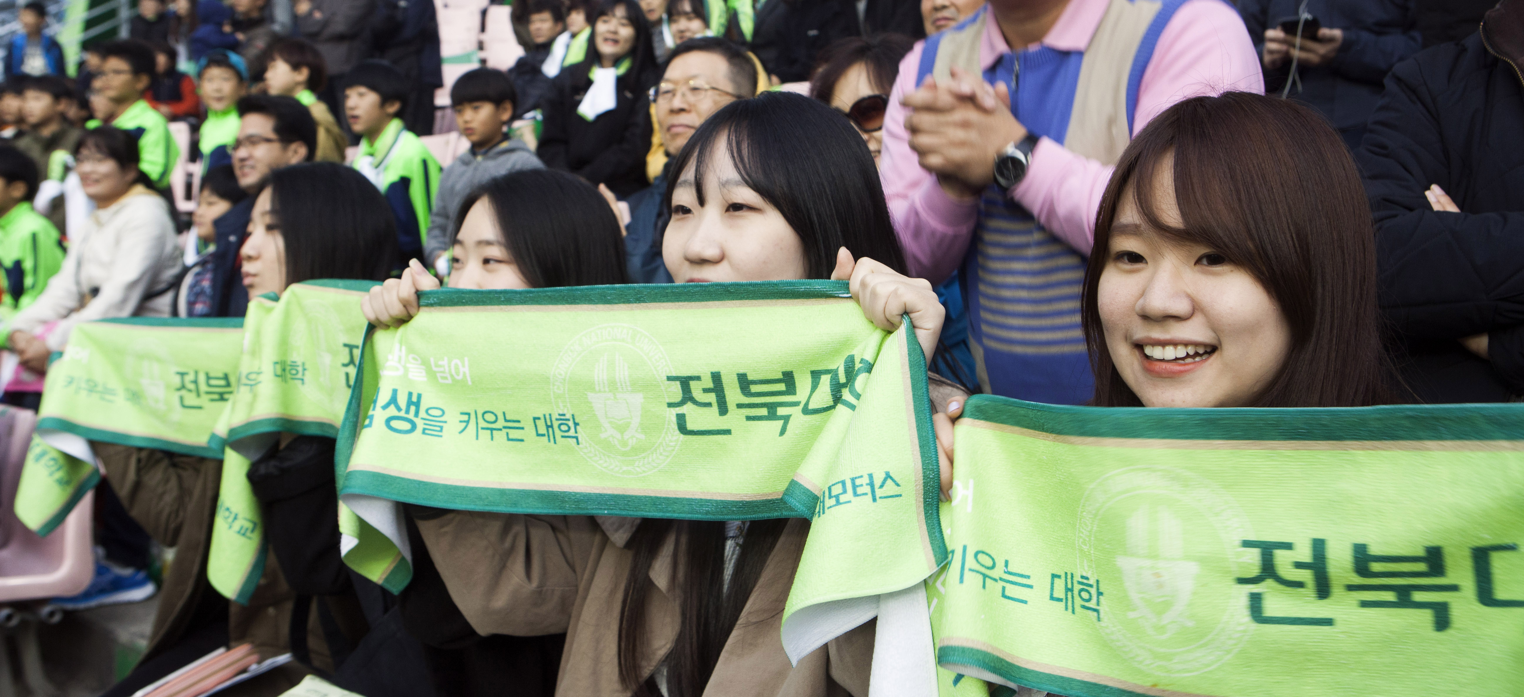 우리대학은 지난 11월 21일 전주 월드컵경기장에서 열린 전북현대와 성남 FC와의 시즌 마지막 홈경기에서 이남호 총장을 비롯한 학생과 직원, 교수 등으로 구성된 대규모 응원단이 참여해 응원전과 다채로운 이벤트를 펼쳤다.