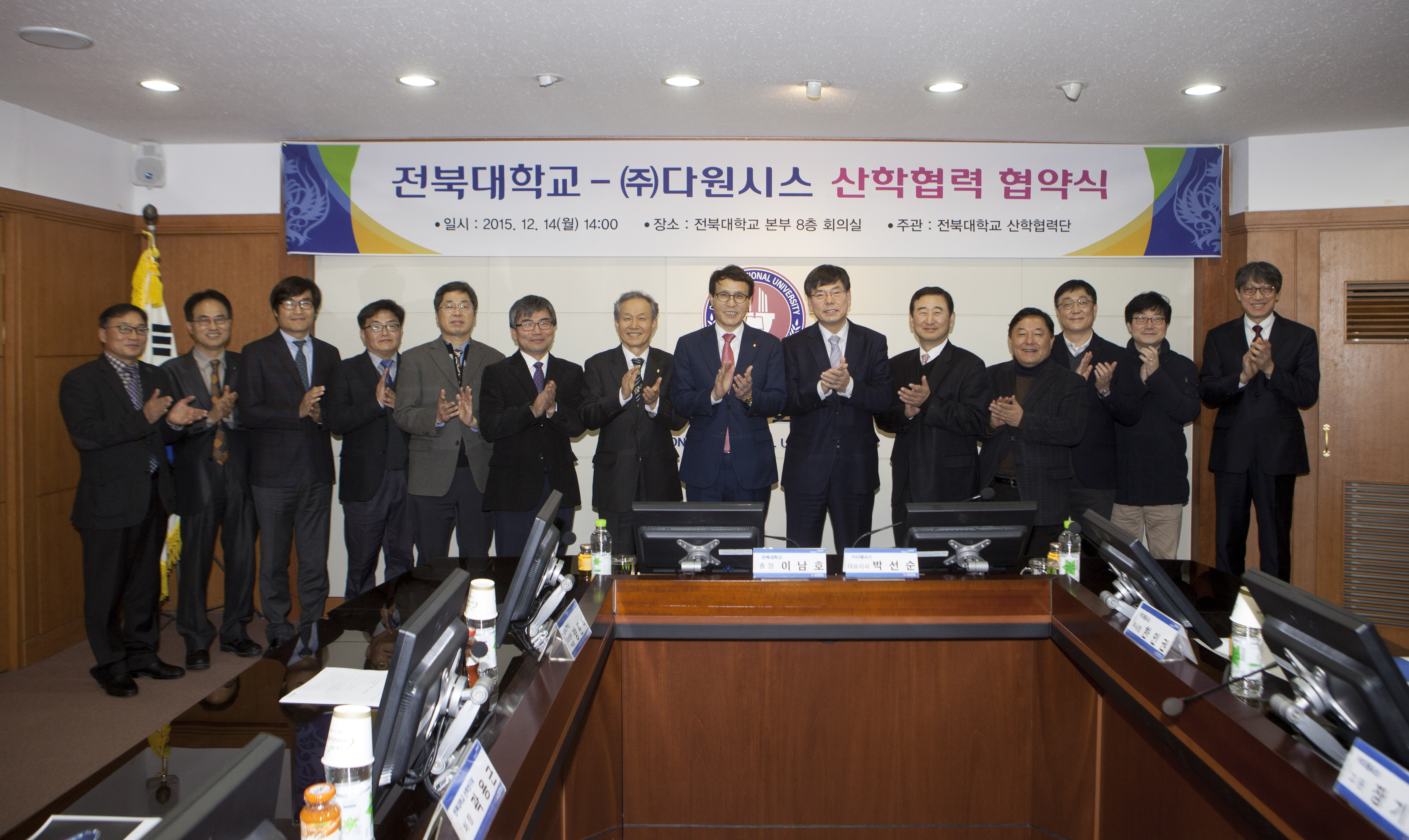 양 기관은 12얼 14일 오후 전북대 본부 8층 회의실에서 이남호 총장과 박선순 다원시스 대표 등 양 기관 주요 관계자들이 참석한 가운데 산학 공동연구와 전문 인력 양성을 위한 업무 협약식을 가졌다.