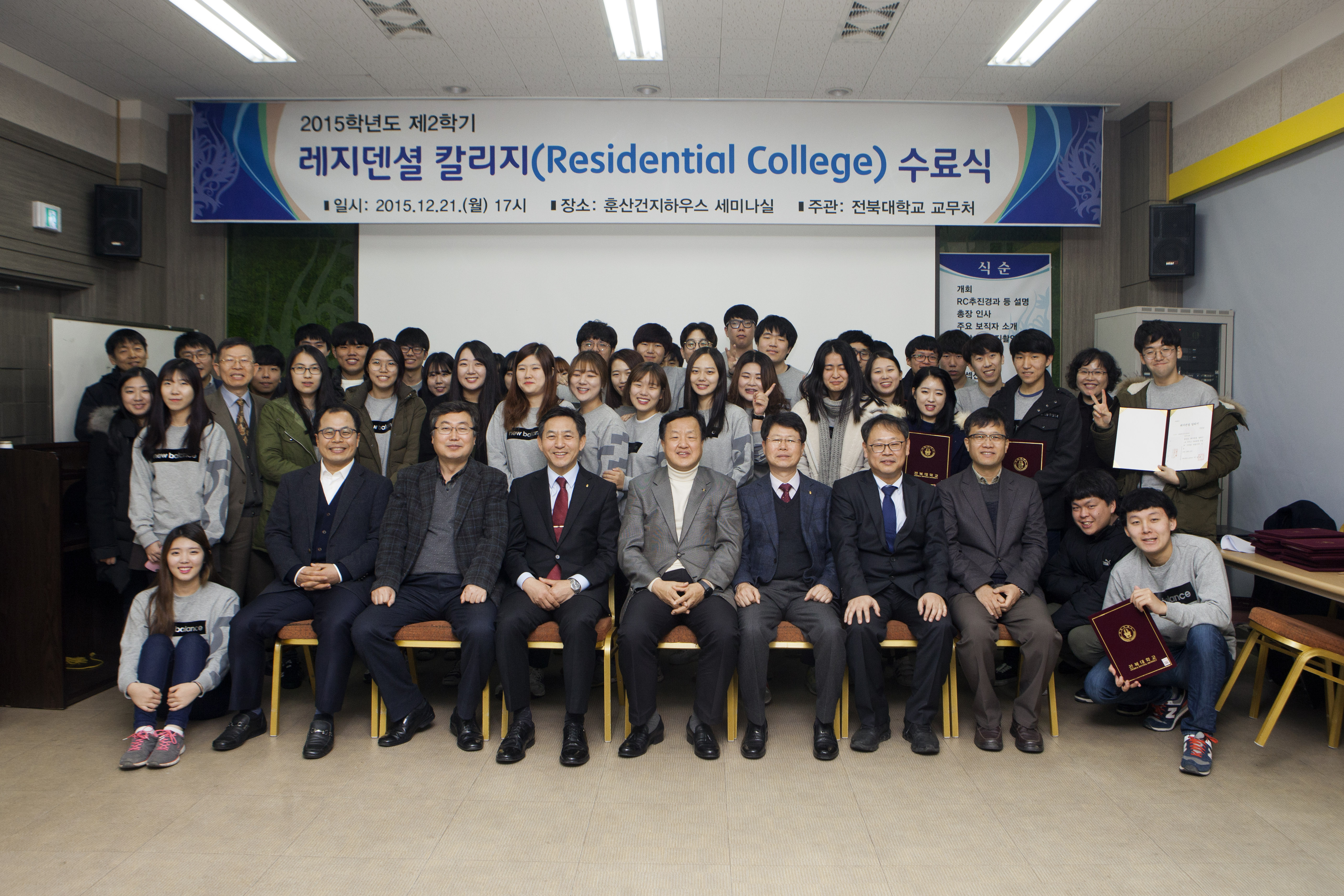 우리대학이 학생들의 실력과 인성을 동시에 키울 수 있도록 국립대 최초로 도입한 ‘레지덴셜 칼리지(Residential College)’ 가 첫 운영을 마치고 지난 21일 오후 수료식을 가졌다.