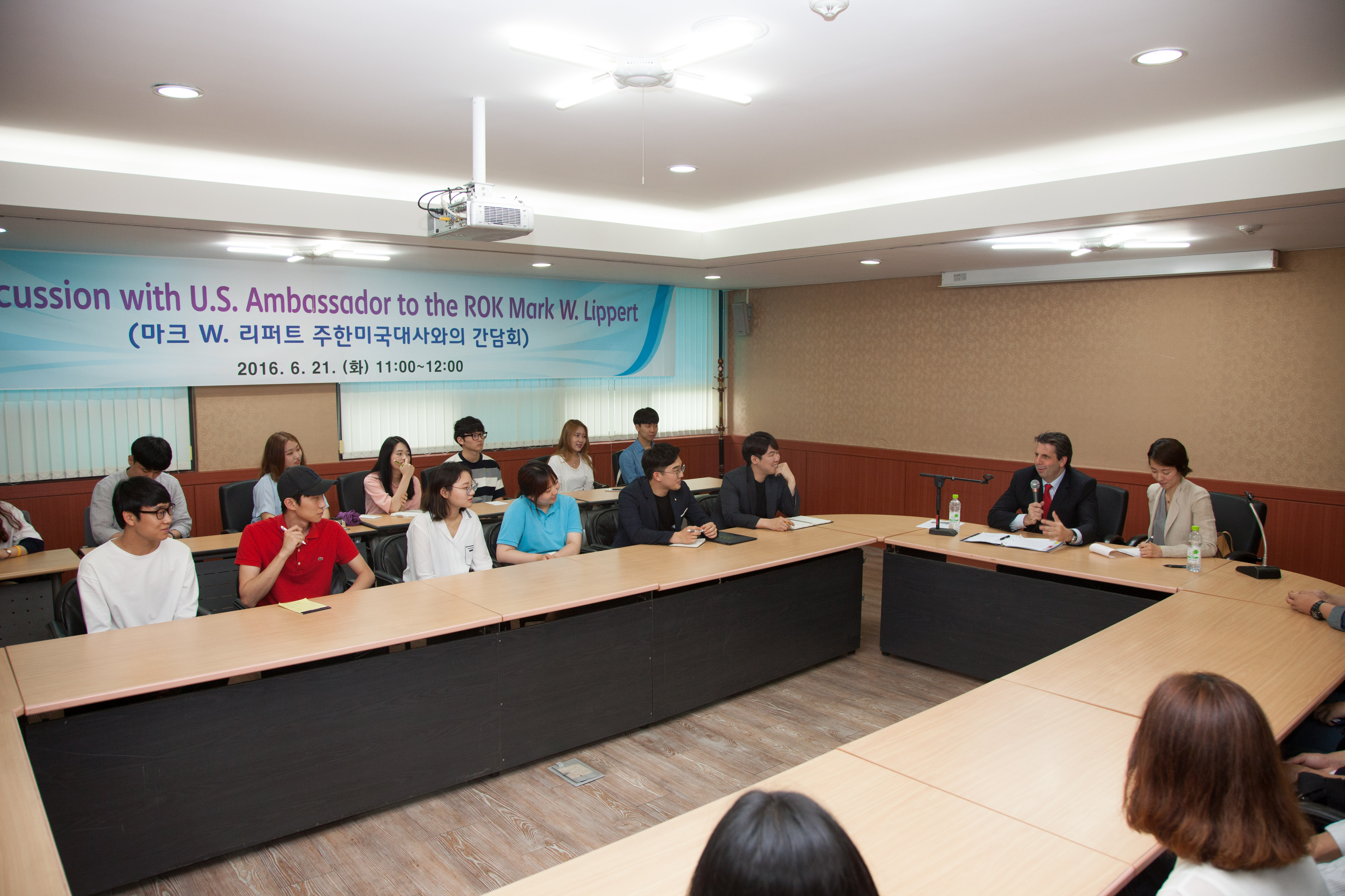 마크 윌리엄 리퍼트(Mark W. Lippert) 주한미국대사는 6월 20일 우리대학을 방문해 대학의 우수 기관과 학과 등을 둘러보고, 학생들과도 긴밀히 소통하는 시간을 가졌다.