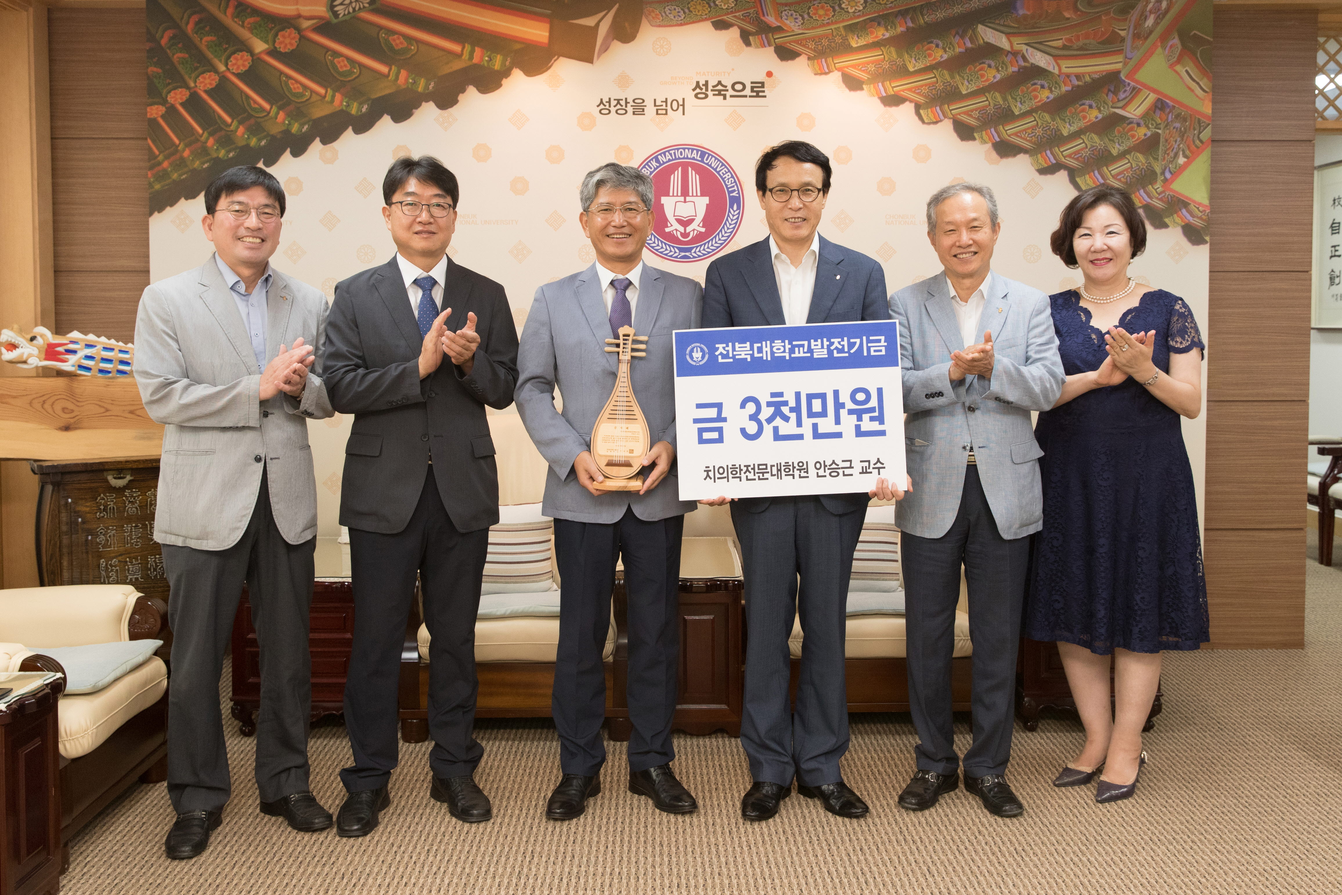 안승근 치의학전문대학원장이 대학 경쟁력 향상과 후학 양성을 위해 3천만 원의 발전기금을 기탁했다.
