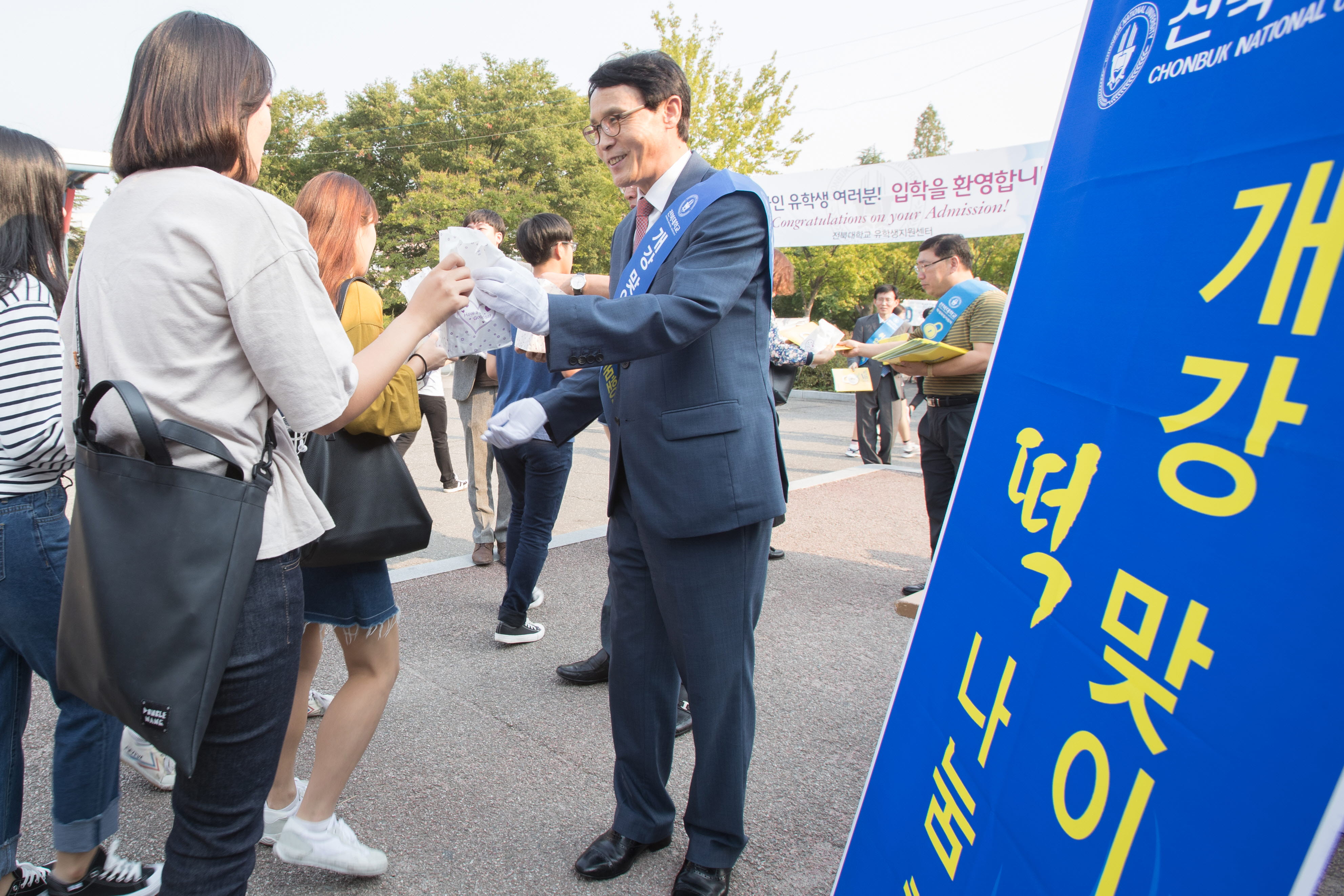 이날 이른 아침 이남호 총장을 비롯한 대학본부 보직자들은 전주캠퍼스와 익산 특성화캠퍼스 각 출입문에 나와 등교하는 학생들에게 5,000인분의 떡과 음료를 나눠주며 소통의 시간을 가졌다.