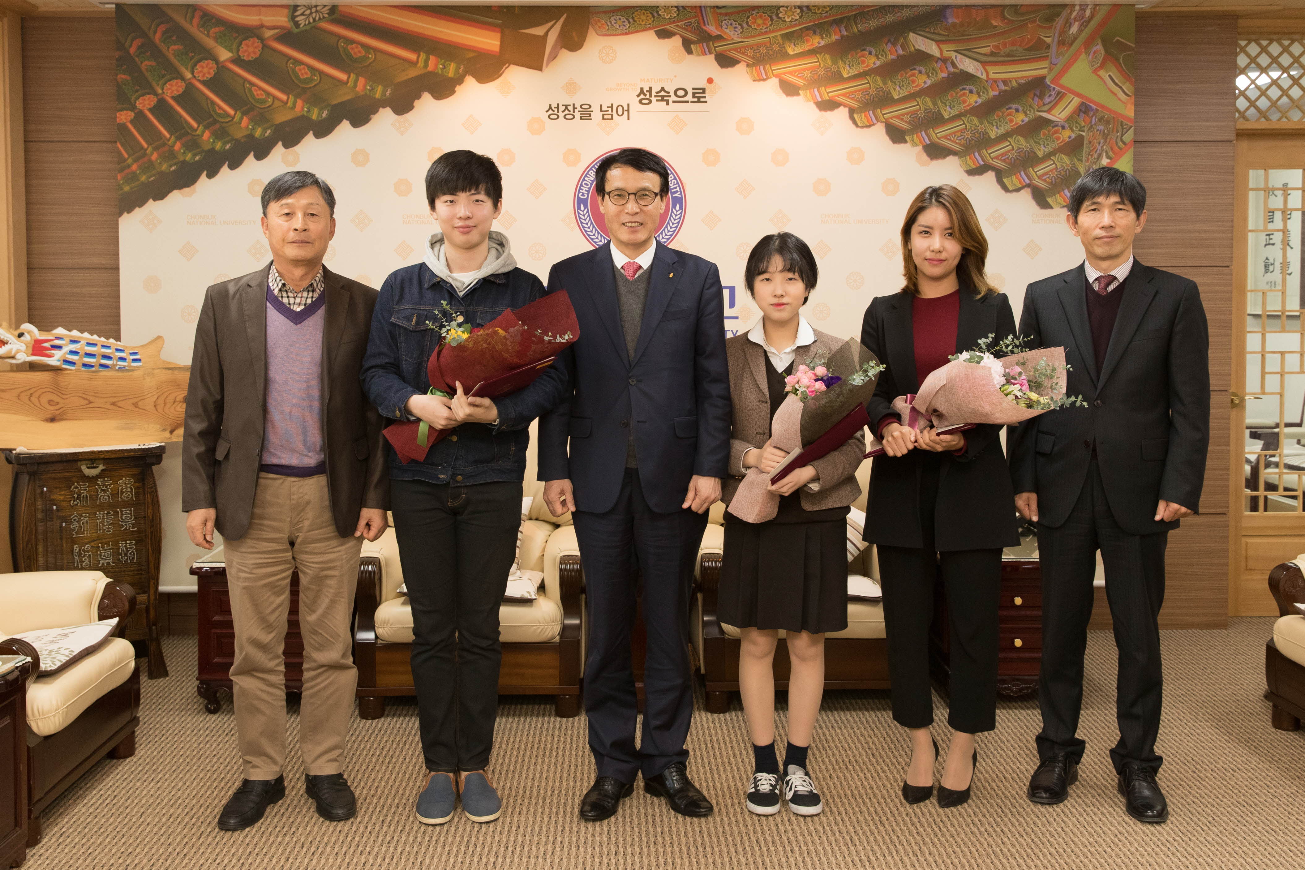 우리대학 신문방송사와 혼불기념사업회·최명희문학관(대표 장성수)이 공동으로 주관하는 ‘2016 이병기 청년시문학상·최명희 청년소설문학상’ 수상자가 결정돼 1일 전북대학교 총장실에서 시상식을 가졌다.