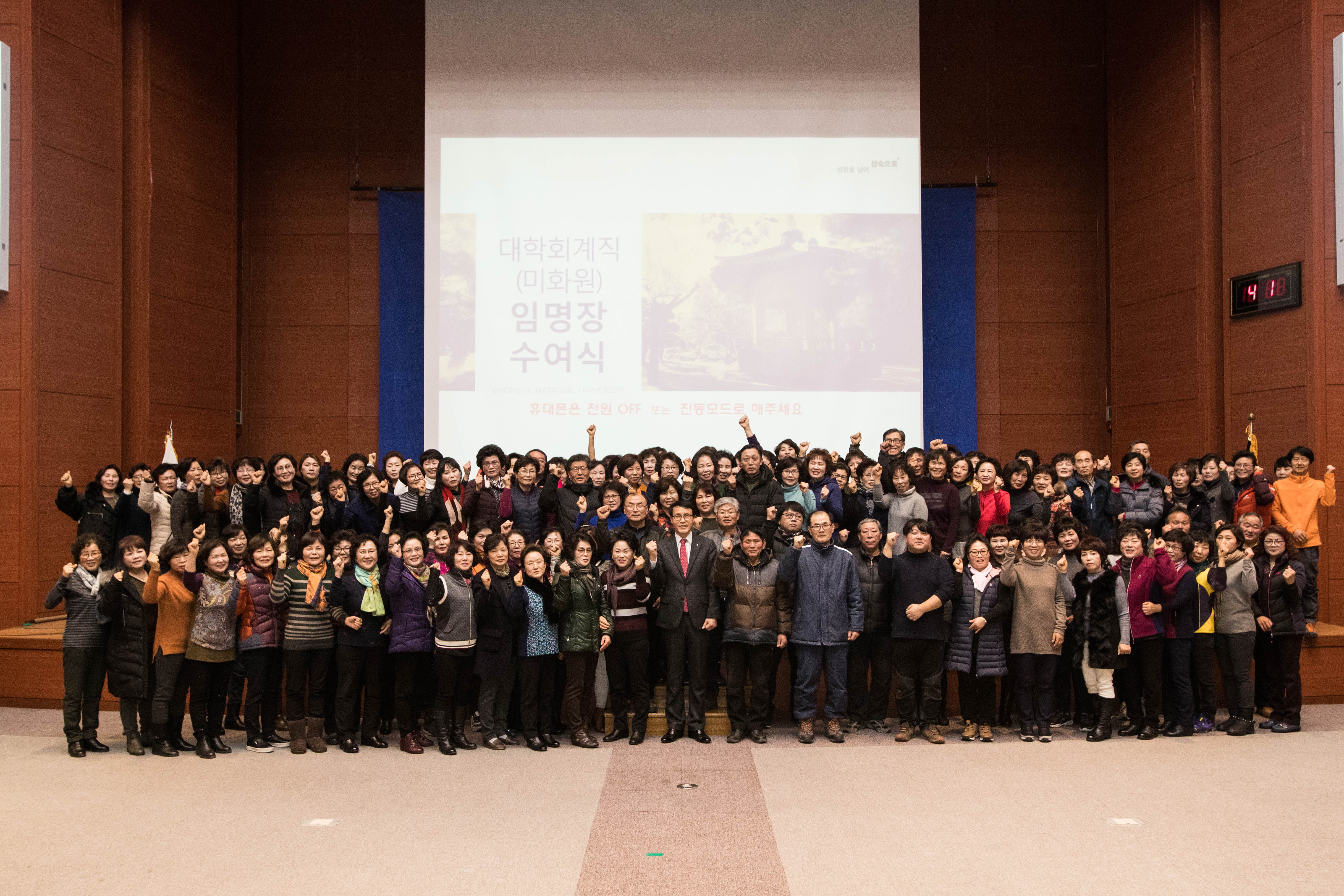 1월 3일 오후 3시 30분 우리대학 진수당에서는 행복하고도 특별한 그들만의 이야기가 꽃을 피웠다. 1월 1일자로 정규직으로 전환된 청소용역 근로자들을 위한 특별한 임용장 수여식 자리에서다.