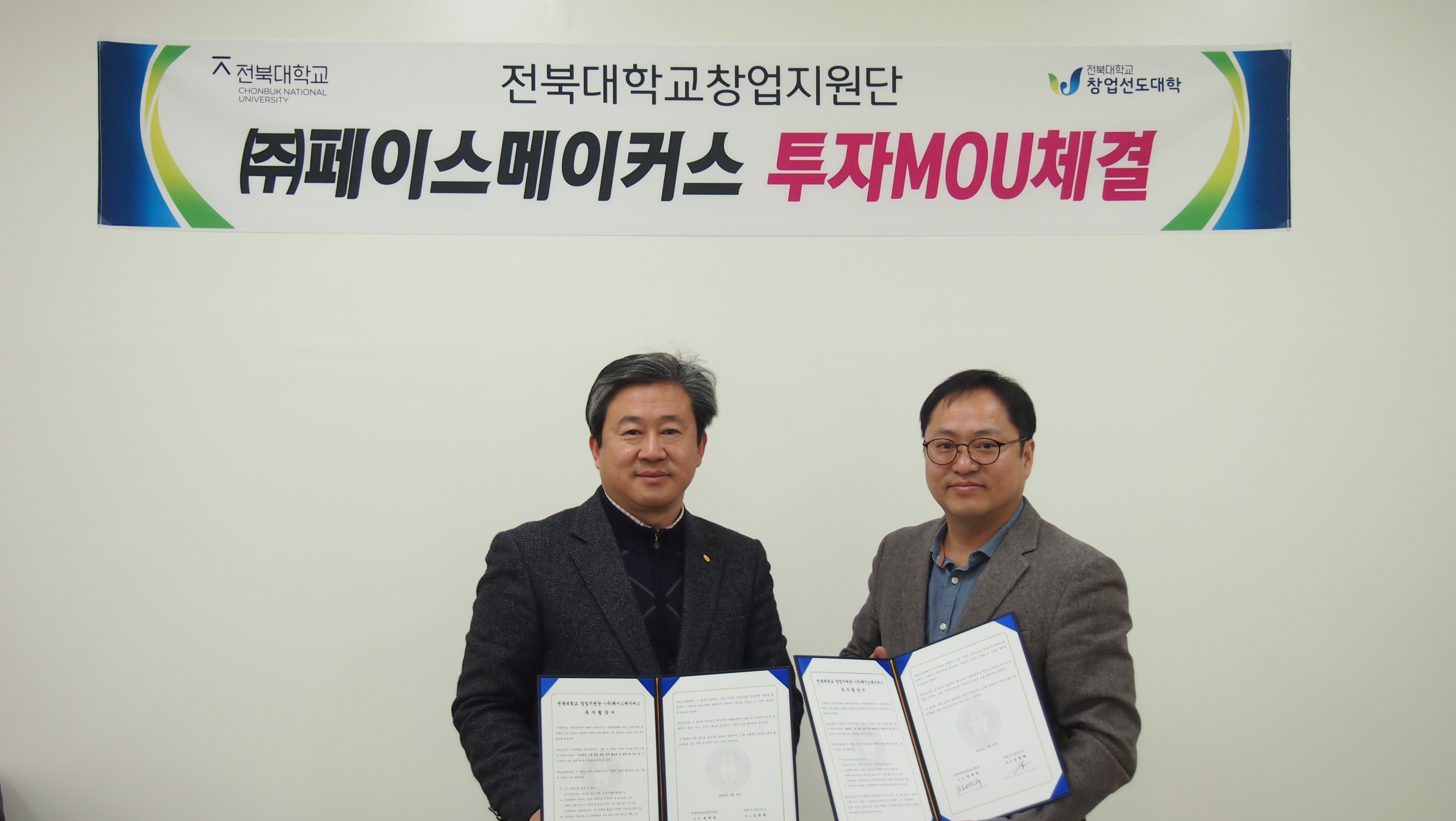 협약에 따라 ㈜페이스메이커스는 투자자금 2억 원을 전북대 창업지원단을 통해 기업에 지원키로 했다.