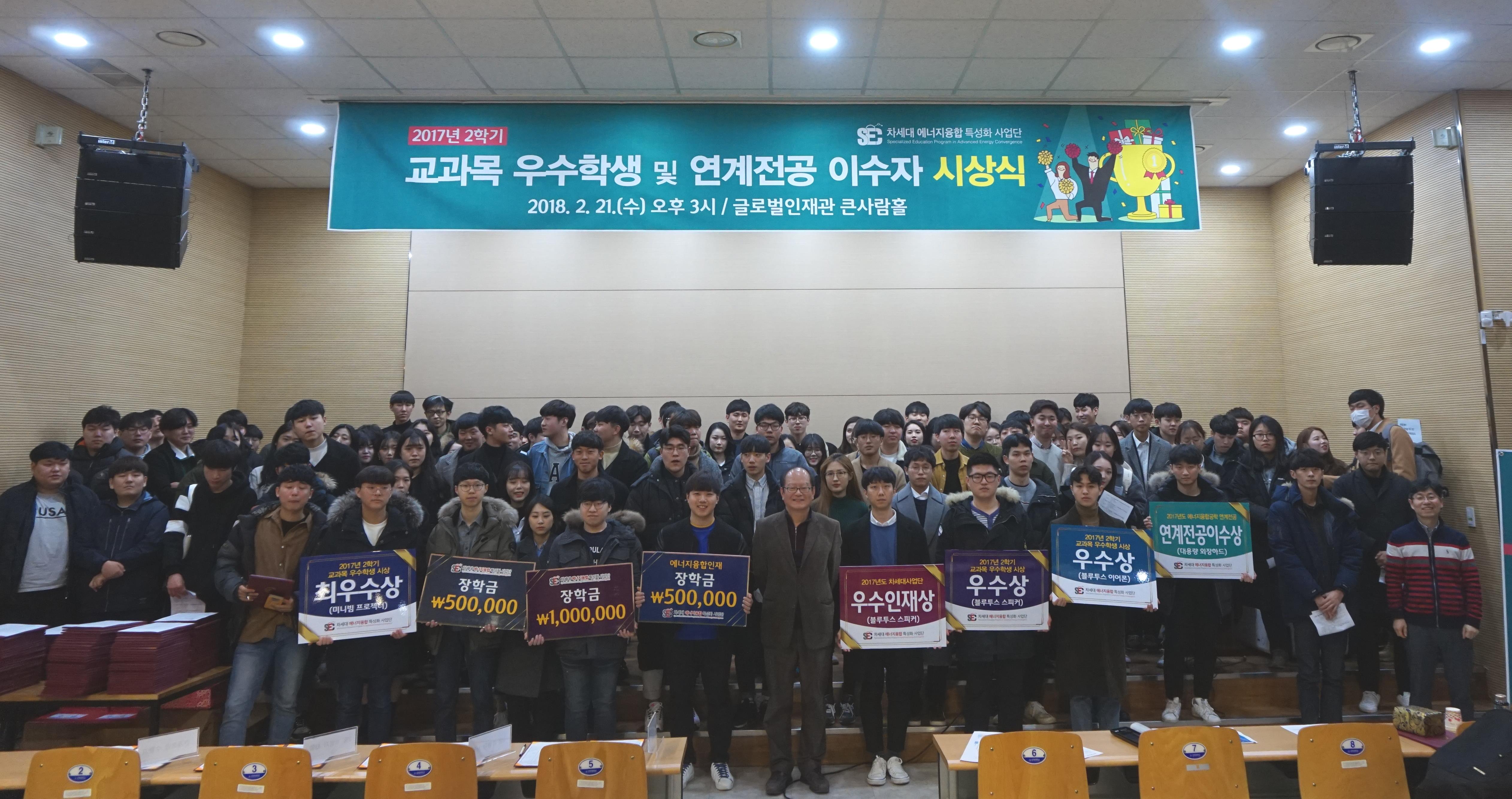 특히 올해 시상한 38개의 교과목 중 23과목은 차세대 사업단에서 주관하고 있는 에너지융합공학 연계전공 교과목으로 구성돼 있다. 때문에 학생들이 부전공 및 복수전공을 성공적으로 이수하는데 동기부여가 된다는 점에서 시사하는 바가 크고 학생 만족도 또한 매우 높다.