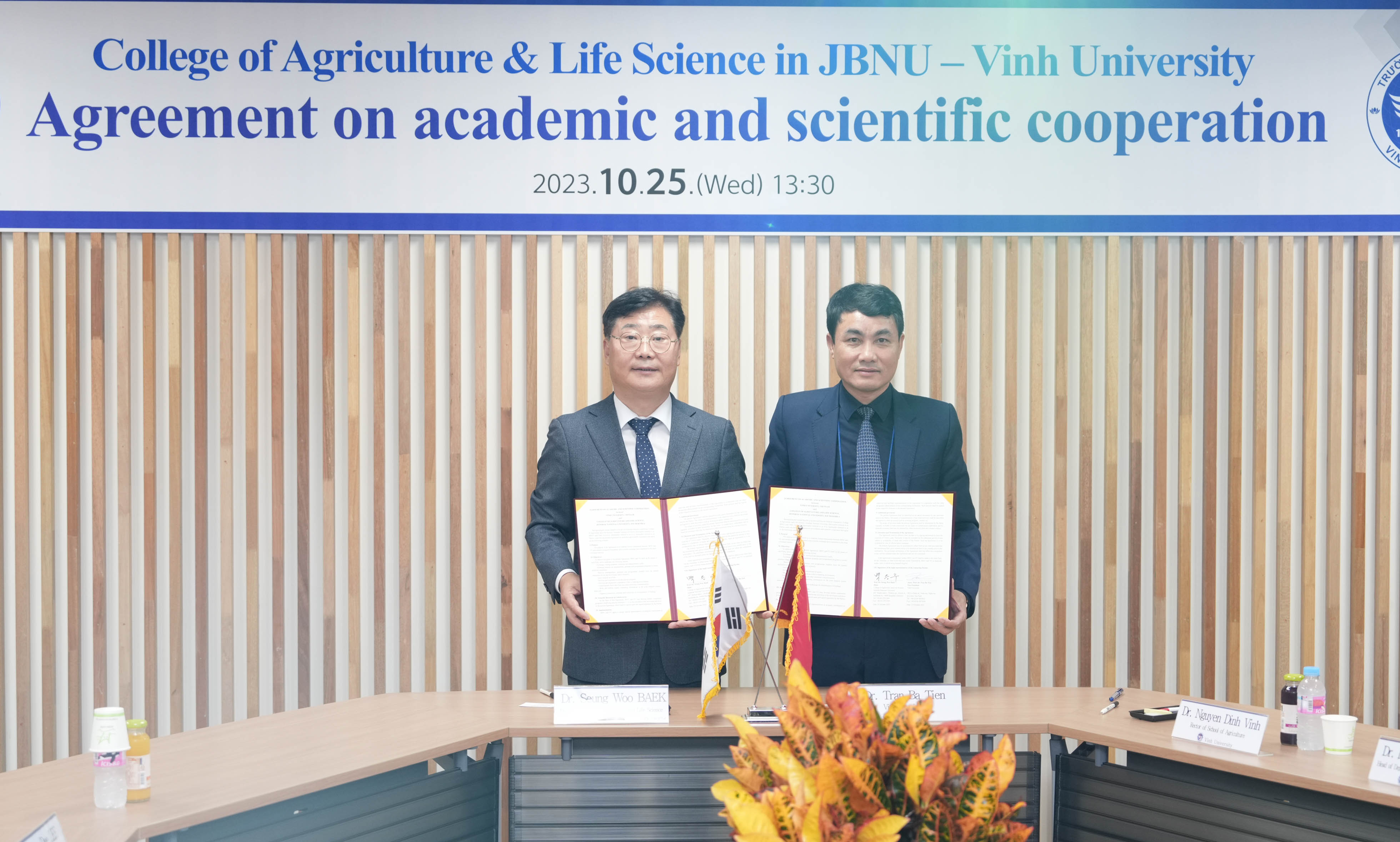 이날 백승우 전북대 농업생명과학대학장과 트란 바 티엔(Tran Ba Tian) 빈 대학 농업대학장 등 양 기관 주요 관계자들이 참석한 가운데 공식 협약식이 진행됐다.